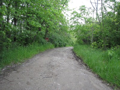 In May 2010, while still living in Columbus, OH, I met up with my mom and sister in Michigan while they hunted for an apartment for Diana in Ann Arbor. I decided to bite the bullet and just drive out to look at that intriguing three-acre listing. I almost chickened out when I reached the end of the dirt road and saw this: