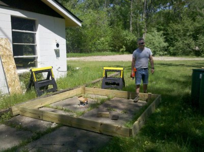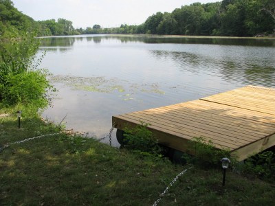 Here are a couple of progress shots. Since these were taken, he’s built a second 8’x8′ section so the dock is twice as long, as seen in some of the later photos in this post.