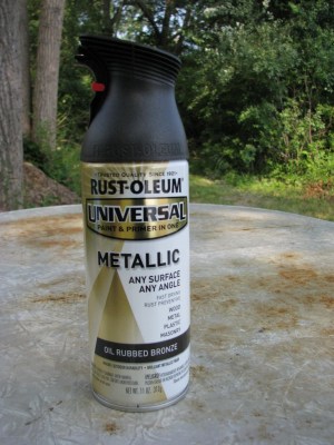 I bought a can of this Rustoleum all-purpose spraypaint in oil rubbed bronze, thanks to some inspiration from one of my favorite blogs, Young House Love. (This blog is a fountain of great house ideas that will not make your credit card bleed!)