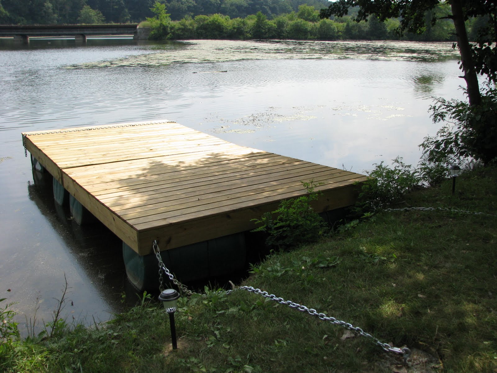 Here are a couple of progress shots. Since these were taken, he’s built a second 8’x8′ section so the dock is twice as long, as seen in some of the later photos in this post.