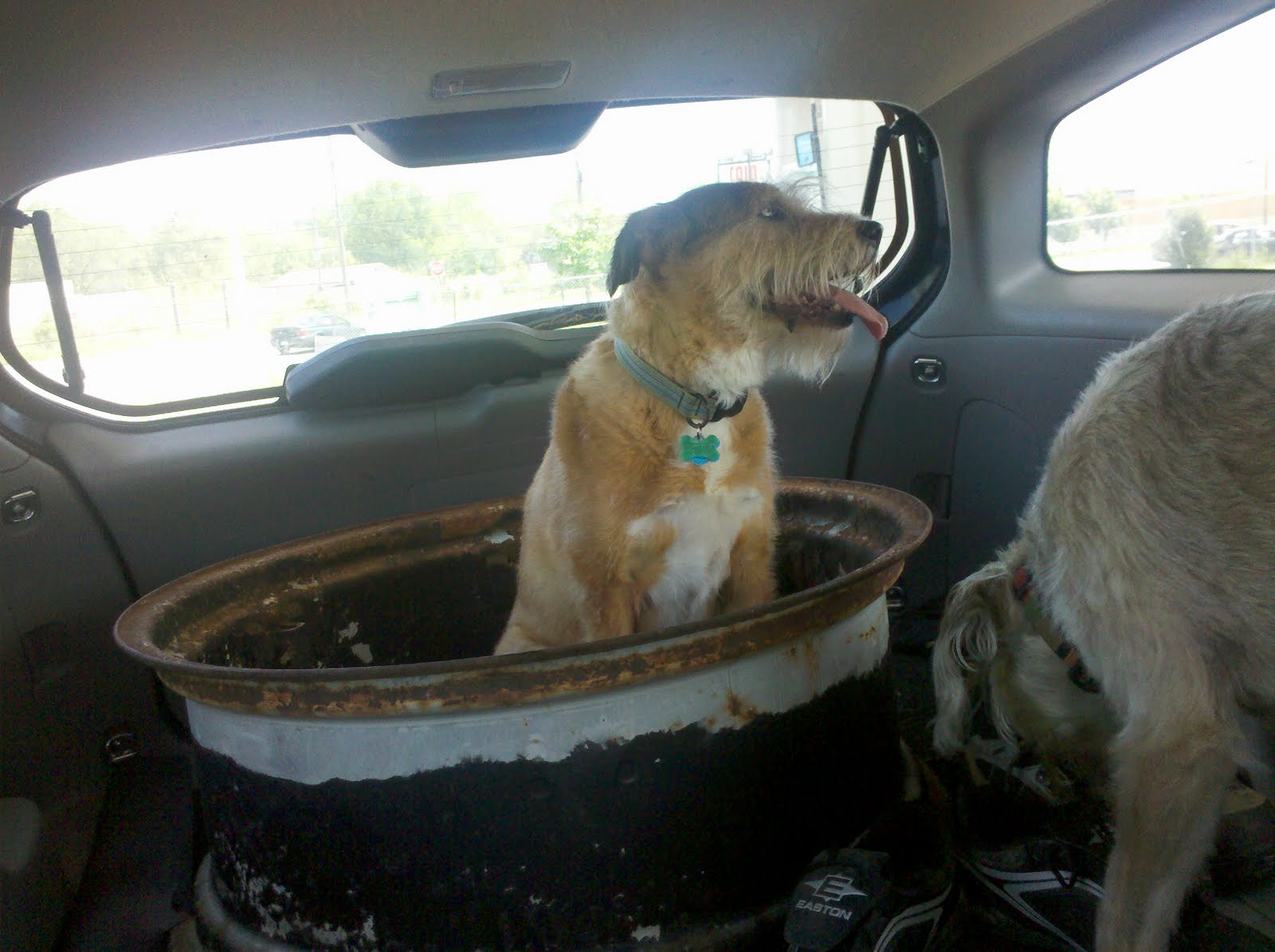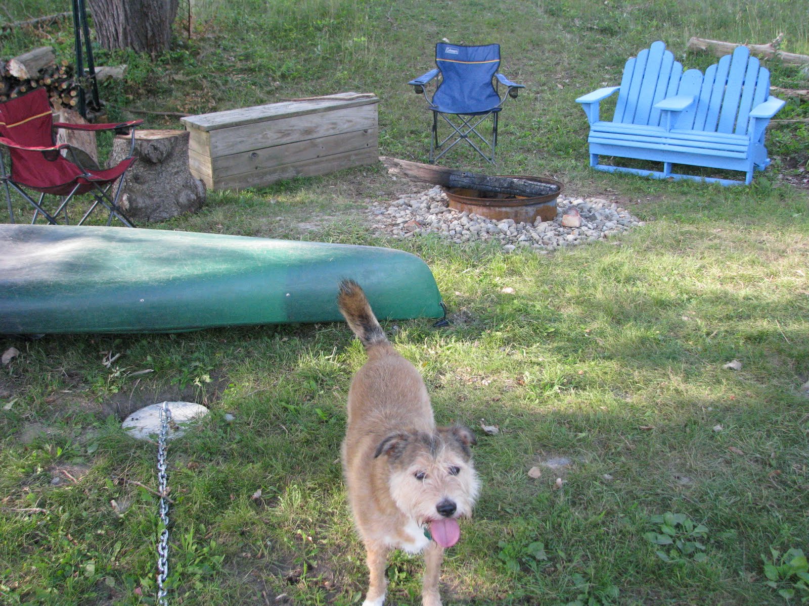 In situ with fire pit and adorable mutt: