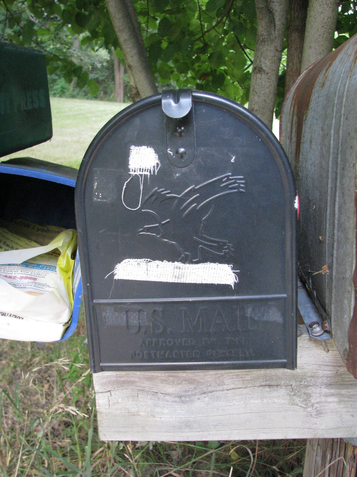 Finally, you can file this last project under “totally minor things that make me super happy because they indicate that we are actually going to get to live here someday.” (Then you should rethink why your file names are so long, that’s just ridiculous.) We got numbers for our poor, abandoned mailbox! We actually didn’t even know that we had a mailbox, since it’s up the road in front of a neighbor’s house. We even bought a new box, post, etc. and had to return them after “discovering” our wayward mailbox (including an archaeological artifact). It’s no wonder we missed it, given that the number was written in faded Sharpie on what looked like a crumbling piece of medical tape.