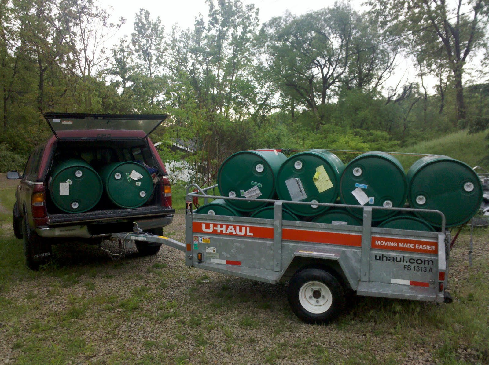 The first big project was building a dock, which B did as a birthday present for me! The first step was some pretty serious barrel transport (thanks, Tacoma and Uhaul!).