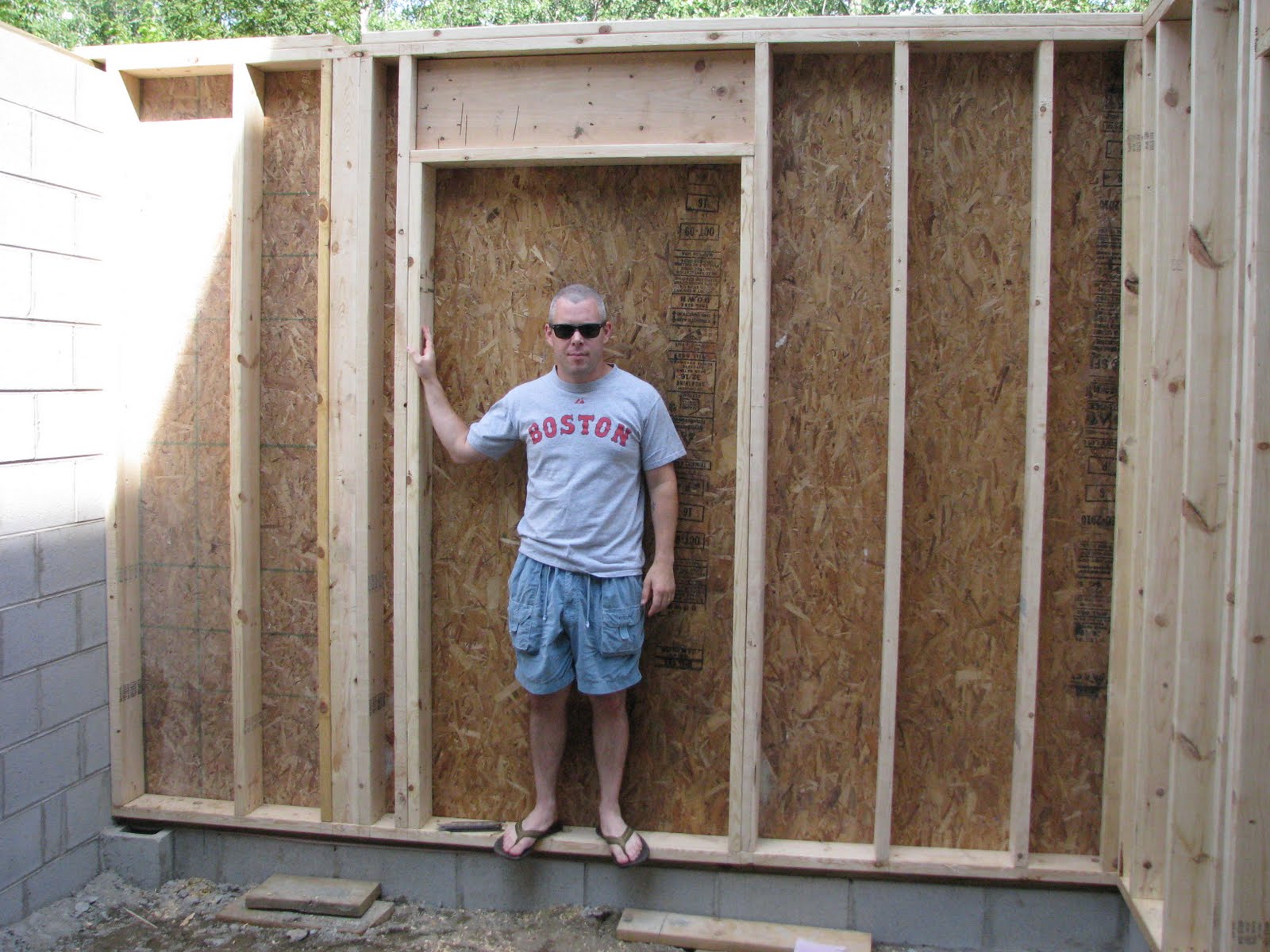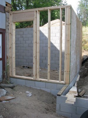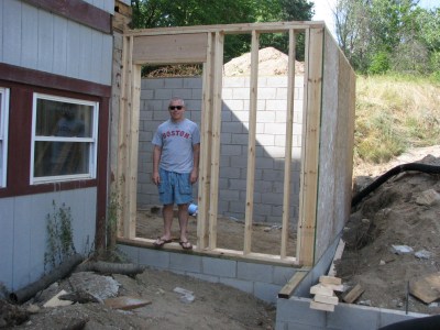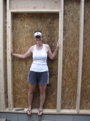 And here we both are in the future main entry door. This doorway will lead into a mud room with a big coat closet, and some stairs up to the main floor of the house.