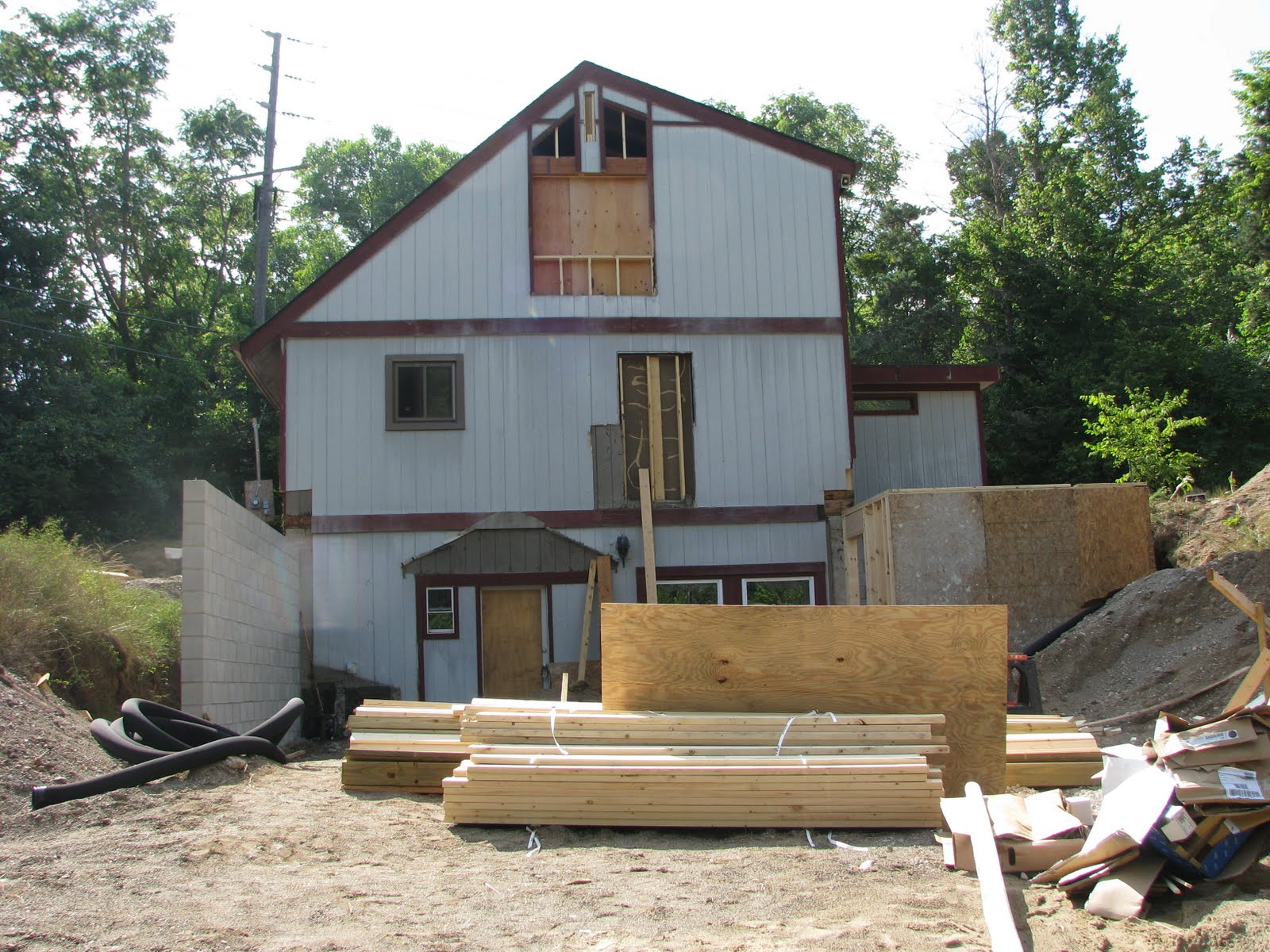 Another big change at Turtle House today, accomplished by the carpenters in 90+ degree heat nonetheless! When we arrived at the house this afternoon, this was the view: