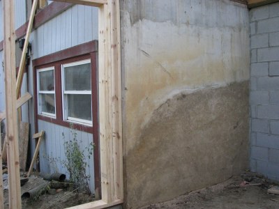 I took this next picture from within the future entry, right by the door I was standing in just above. This is the existing side of the house. I thought it was neat that you can see a line on the concrete wall from where the ground used to be. There is going to be a door in this wall (not sure how they are going to do that?!) which will go from the entryway into the basement. So in the future, at this angle, you will see two doors – the left one leading to the garage, and the right one leading to the basement (everyone with me?).