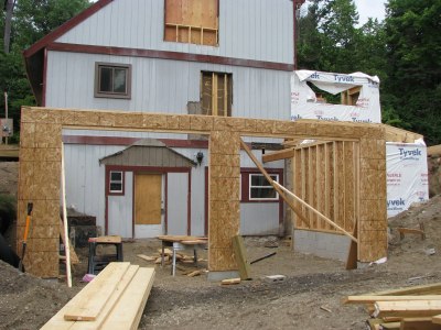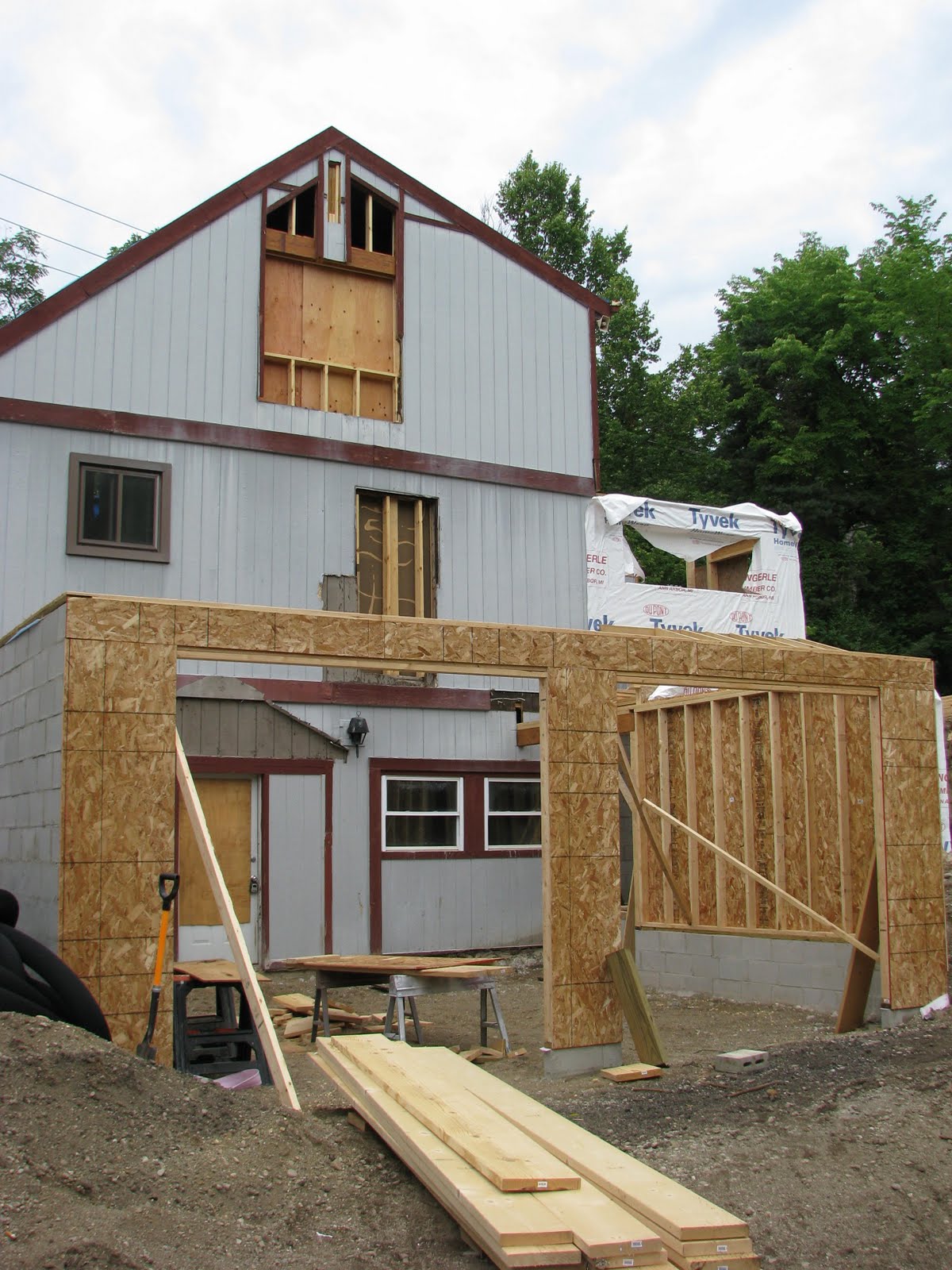 The framers made a lot of progress yesterday on the east side of the house – check out the bones of our garage!