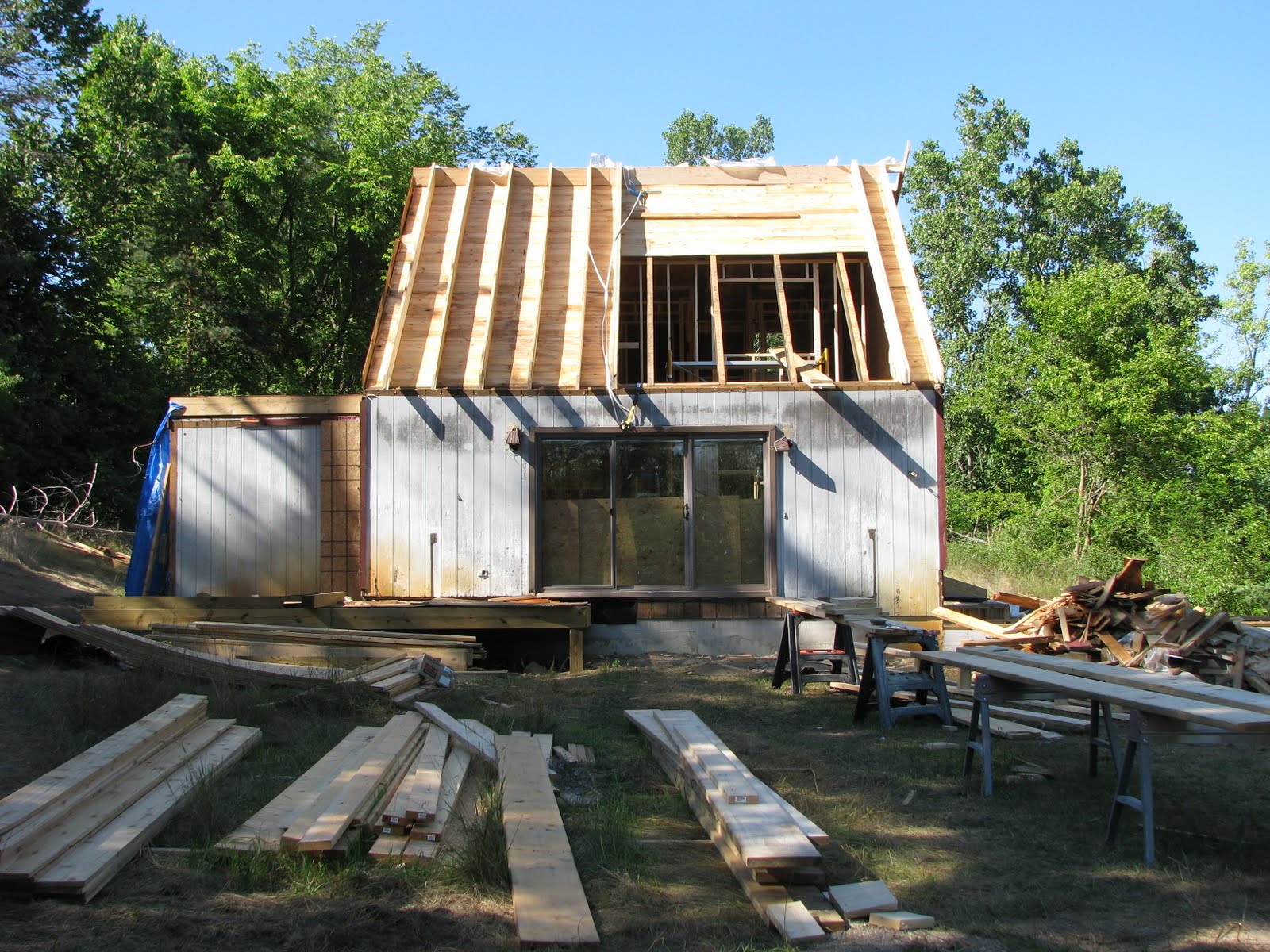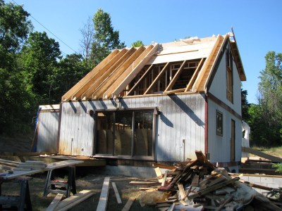 Is it the world’s largest skylight? Well maybe for now, but it will ultimately be our dormer, which will (1) give us a river view from the bedroom; and (2) significantly increase the awesomeness of the living room. Here is a somewhat old schematic to help you visualize – the windows have changed a bit, but you’ll get the idea: