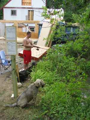 Of course we had to climb up and take a closer look. We were really excited to see how tall these boards are, because all of this space will be filled with insulation. We will be toasty warm in the winter and nice and cool in the summer! (More on our HVAC system soon – we are installing a geothermal system, so there should be some upcoming shots of the major excavation that entails!)