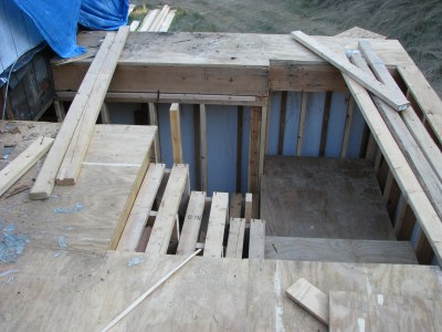 While we were up there we also did some peering down through temporary holes in our house… Here is the future entryway…