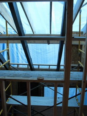 The carpentry crew must have been at another site today, so nothing new to report framing-wise. The dormer still has a scenic view of… tarp.
