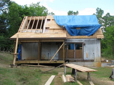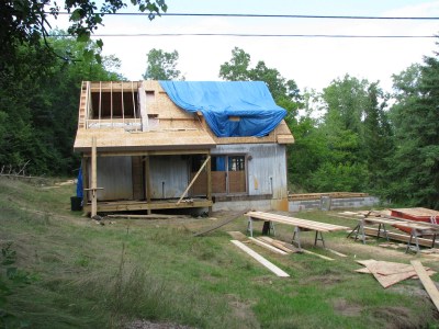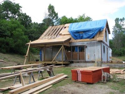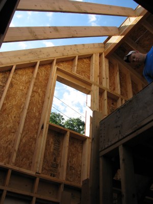 And here are a couple shots of the second floor addition. There will be one big window looking north, which will overlook the woods out back and the meadow where our garden will be.