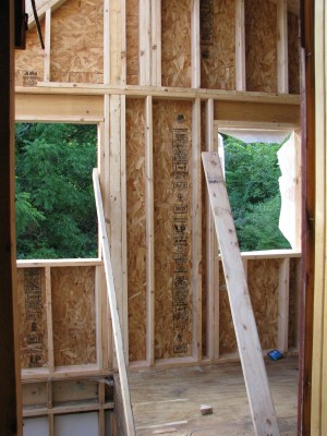There are two windows looking west into another forested area – one of these will be in the new room, while the other will be at the top of the stairwell.