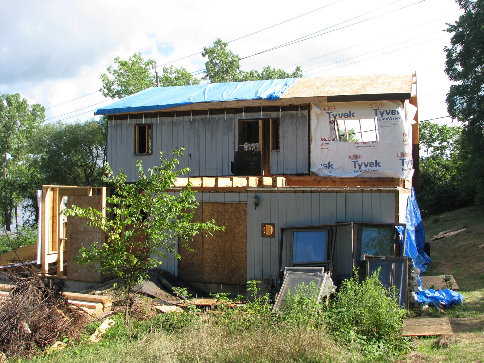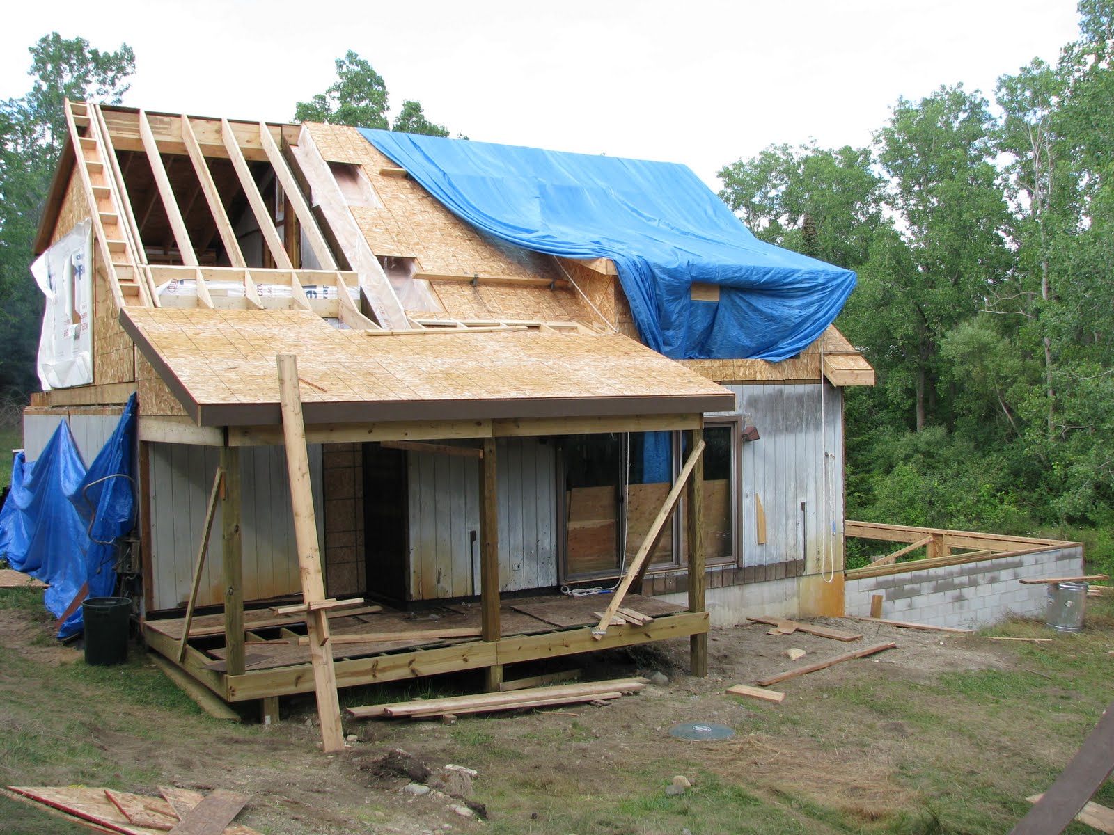 And here are a couple shots of the second floor addition. There will be one big window looking north, which will overlook the woods out back and the meadow where our garden will be.
