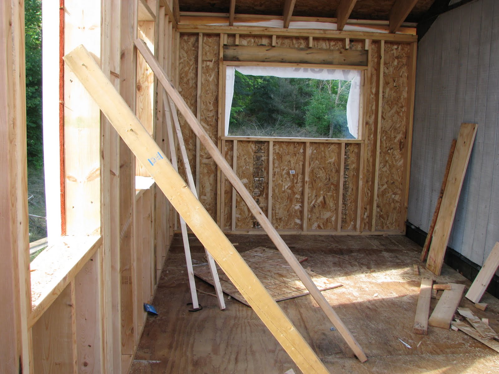 There are two windows looking west into another forested area – one of these will be in the new room, while the other will be at the top of the stairwell.