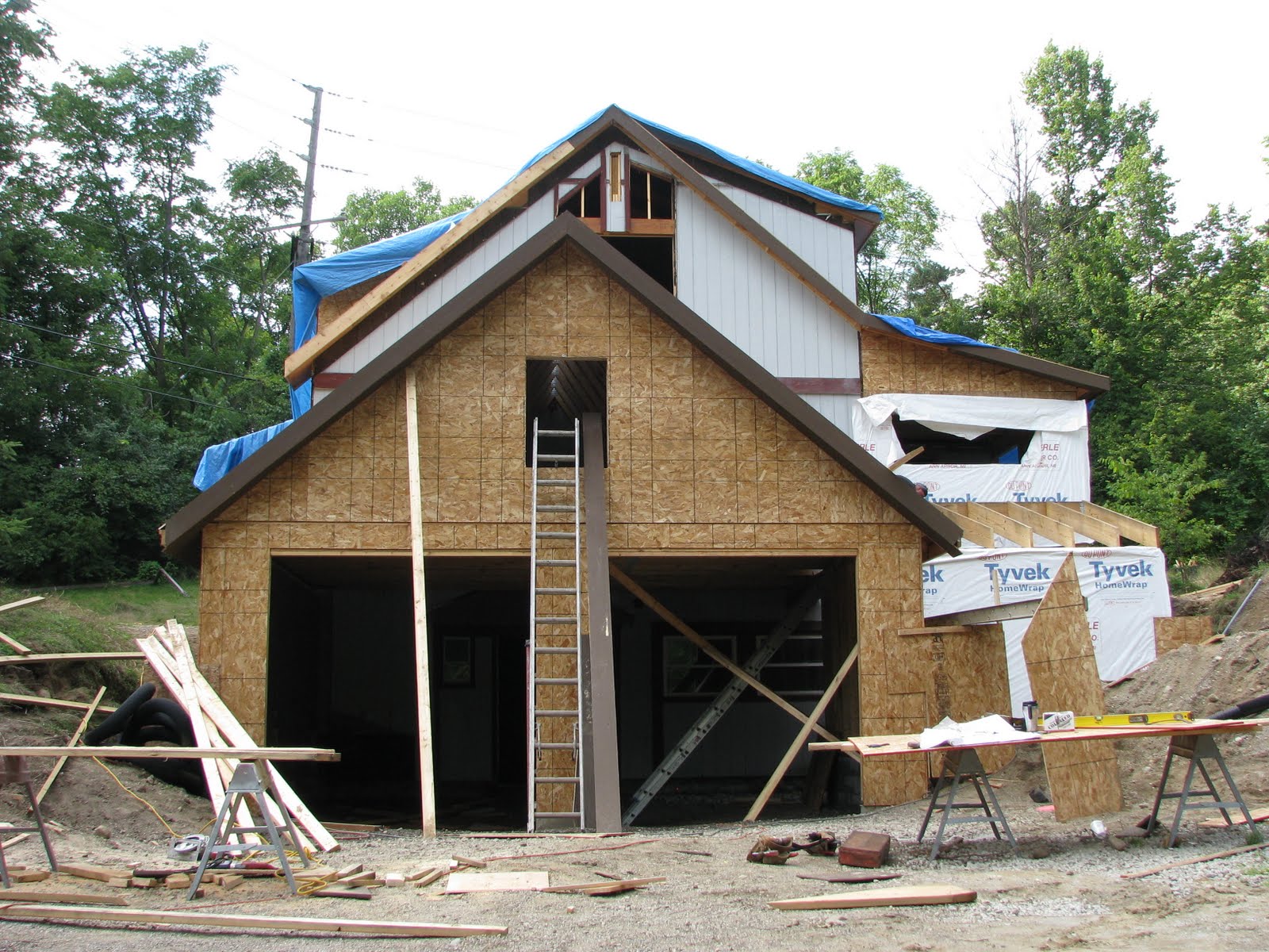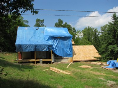 We went over a bit early today, because Brandon was going for a run so I joined him on my bike (don’t laugh – it had been so long since I biked that it was just about the right pace…). The workers were still there and we didn’t want to get in the way, hence the lack of close-up and interior shots. More tomorrow, at which point the roof will have shingles!