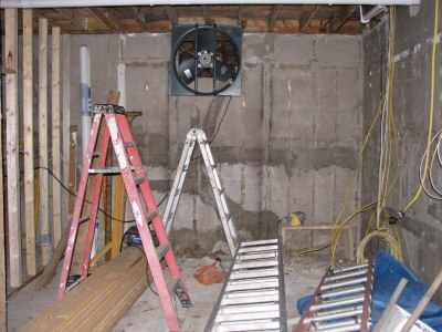 Also of note in the basement, they busted a door through the concrete block wall to join the basement with the new entryway (in this sentence I imagine “they” to be a crew including Superman, Captain America, and Hulk Hogan). You’re welcome for the additional perk of Brandon’s sexy laygs in this photo.