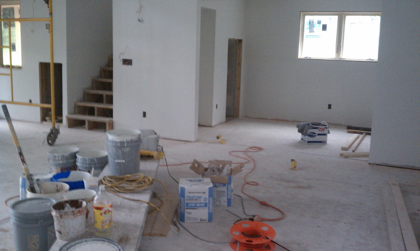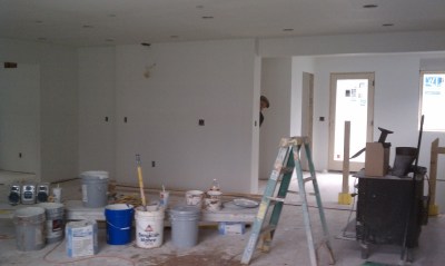 I know the people working on our house are professionals who do this for a living – the carpenters, electricians, drywallers, plumbers, and painters do this stuff every day and so they are really freaking good at it. Even so, there are days when I just think they must be some kind of evil geniuses because they do things SO MUCH FASTER than I can even conceive of doing them. It totally blows my mind all the time… like, for example, today. We got to the house to find THE ENTIRE INTERIOR primed and ready to paint. The. Entire. Thing. Every wall, every ceiling… I know, I know, you get the picture and I should stop rambling, but seriously: mind = blown. Especially since we didn’t even know that the painters were going to do this! We thought, since we were in charge of painting bedrooms and bathrooms, that we’d also be priming those areas. What an amazing surprise! Time to return the primer I bought yesterday!