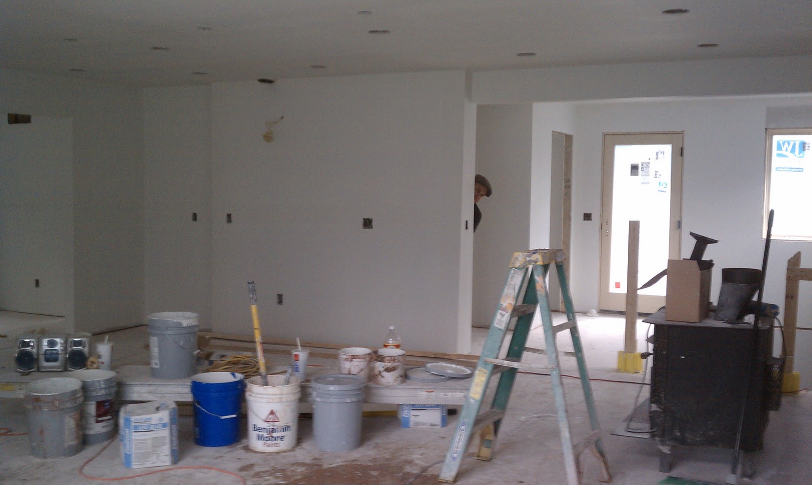 Anyway, we came straight from work, so I only have these few cell phone pics to share (but really, how exciting are photos of bare white walls?). PAAAAAAAINT TIME!!!
