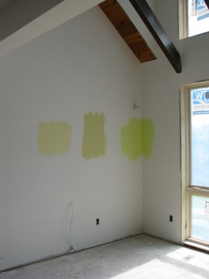 So today I added to the collection of paint samples on the wall. Here is the living room by the windows on the south (river) side: