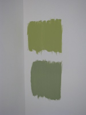 These are Dill Pickle (2147-40) and Dill Weed (481), which I thought was hilarious. I kinda like both of these, but I think if we go with a more yellow color for the great room (e.g., Cypress Grove), that Dill Weed would work a bit better with it. We’ll see…