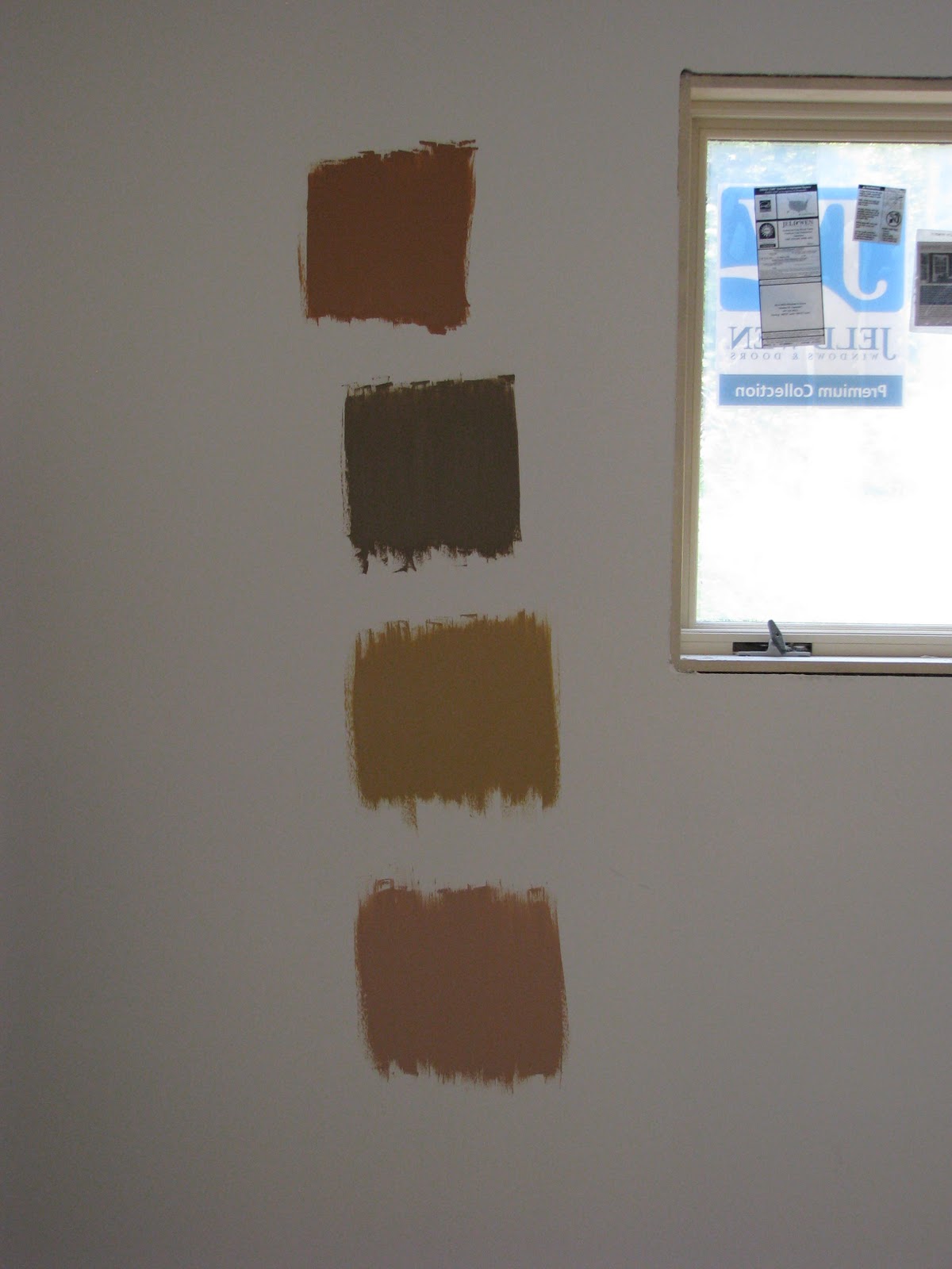 From left to right, we were looking for a greeny-yellow for the main living area, blue for the guest bedroom, green for the guest bathroom, and an orangy-red-tan (yes that is the technical term) for the dining room. That would cover the whole first floor, but leaves the upstairs rooms TBD.