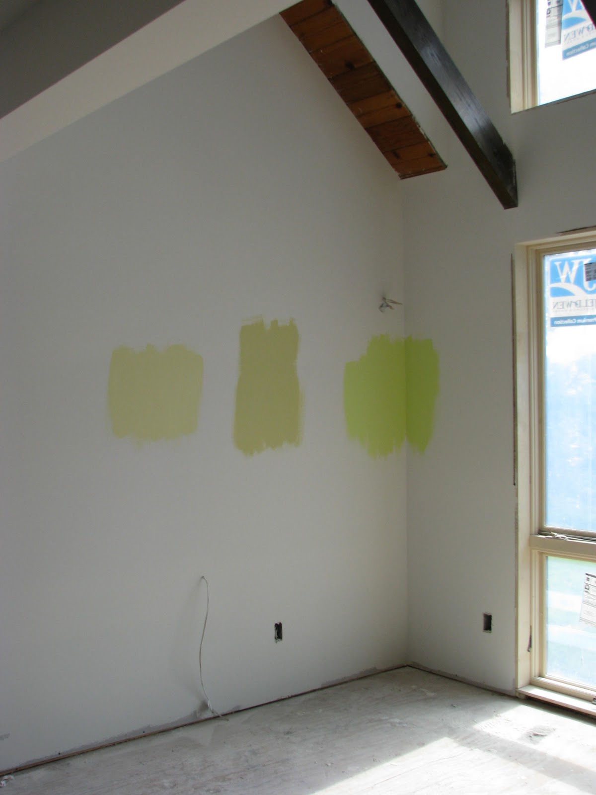 I love your bold color choices. One thing I would mention from our recent experience is that even though a painting swatches on the wall is much much better than just looking at chips, it still doesn't give you a very good sense of what it will look like. As you know, we had approx 3ft x 3ft samples on our house, and even so I was a little surprised to see it when a whole wall was painted. In hind sight, once we had chosen the color, I think it would have been helpful if we had painted an even much bigger area with that color just to make sure. We did still have about 90% of the sample paint can left over, so I'm not sure why I didn't think of that. If we'd done that, we might have gone with a slightly different shade, or maybe still the same one, but at least it wouldn't have been shocking to see it once painting was seriously underway and there was no going back.