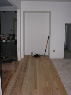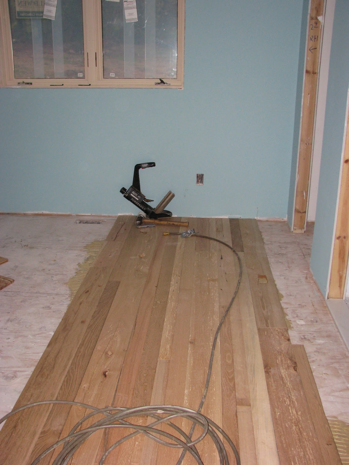 In other news, the flooring guys were wrapping up their day when I got to the house this evening – they had laid more flooring in the guest room…