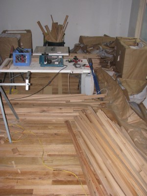 I chatted with the flooring guys a while today about what they’d recommend to seal the floors. Being an eco-nerd, I’d hoped to use a non-toxic, low-VOC product like linseed oil. They warned me that using a natural oil would be super high maintenance (it would have to be redone frequently) and it wouldn’t protect the floor well from spills, dog toenails, etc. They recommended a product called Glitsa that I’d never heard of. I came home and Googled it, and learned that it contains formaldehyde… but then found another site claiming that the formaldehyde breaks down very quickly and there’s no off-gassing, whereas polyurethane finishes can off-gas for much longer. Sad face. What’s a girl to do? Anyone out there have any experience with these purportedly green sealers?