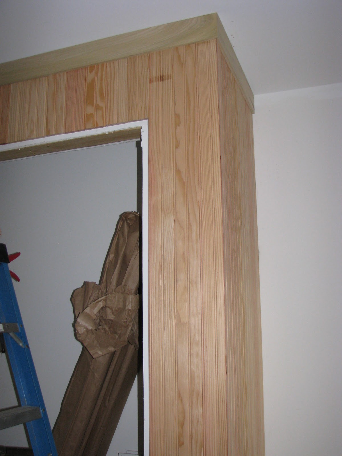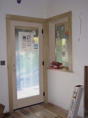 In other areas of the house the trimming is moving along… like around the door and window on the river side porch: