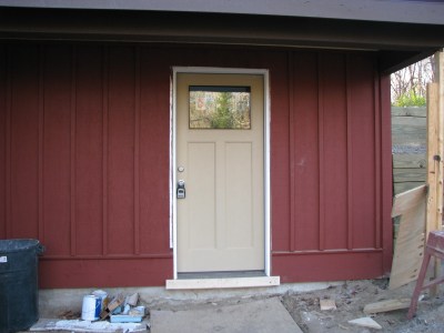 This door will eventually be painted a warm golden color, and there will be a concrete porch instead of the current plywood version. But you know, we can’t get rid of ALL of our plywood accoutrements at once.