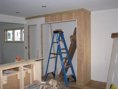 This will be painted beadboard – I know right now it’s giving me scary flashbacks to the rampant wood paneling disaster that was the original Turtle House, but it’ll be a nice touch when it’s painted. The front side of the island will also be beadboard so they can be friends. No one wants lonely beadboard.