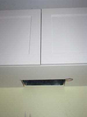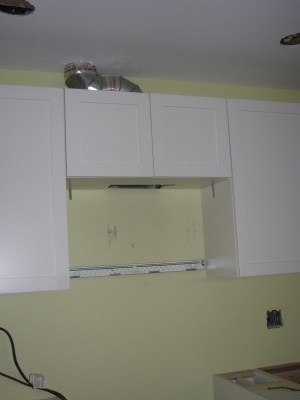 A couple holes, actually – the GC is getting ready to install the over-the-range microwave, so this cabinet had to be modified to accommodate the vent:
