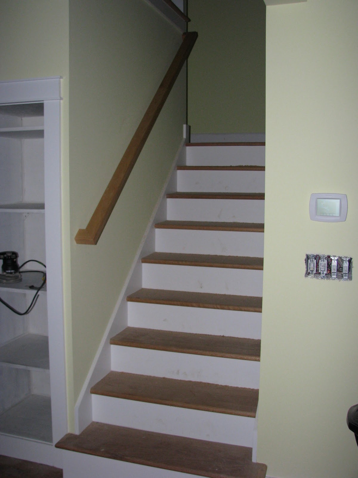 And yes I ran my hand the whole way up it while I went upstairs, despite the dust. The rest of the handrails should go in after the flooring is finished, which will hopefully be later this week! Between Brandon and the flooring guys, all of the floor holes appear to be filled with epoxy and/or pieces of wood (for the larger notches). Hooray for a hole-less floor. Next up will be sanding, because what this house needs most is MORE SAWDUST!