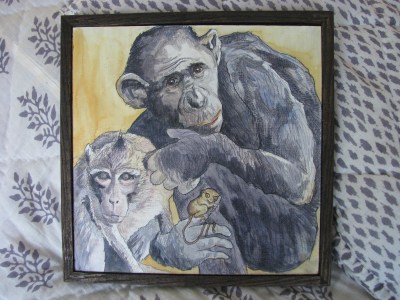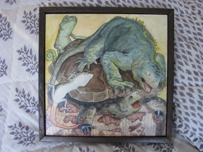 But sorry to the poor suckas who saw them at the show, because THEY WERE ALREADY SOLD. That’s right, I got an inside line on the awesomeness that is these paintings and I snapped them up right quick. When I first saw them, I thought “must go in nursery!!!!” (with four exclamation points). Then I immediately started to feel bad, like I shouldn’t put them up there because then no one will ever see them, and maybe they should be somewhere on the main floor of the house to be properly appreciated? But won’t Cletus love them, and wouldn’t they be such a perfect accompaniment to snuggling and reading Darwin at bedtime??