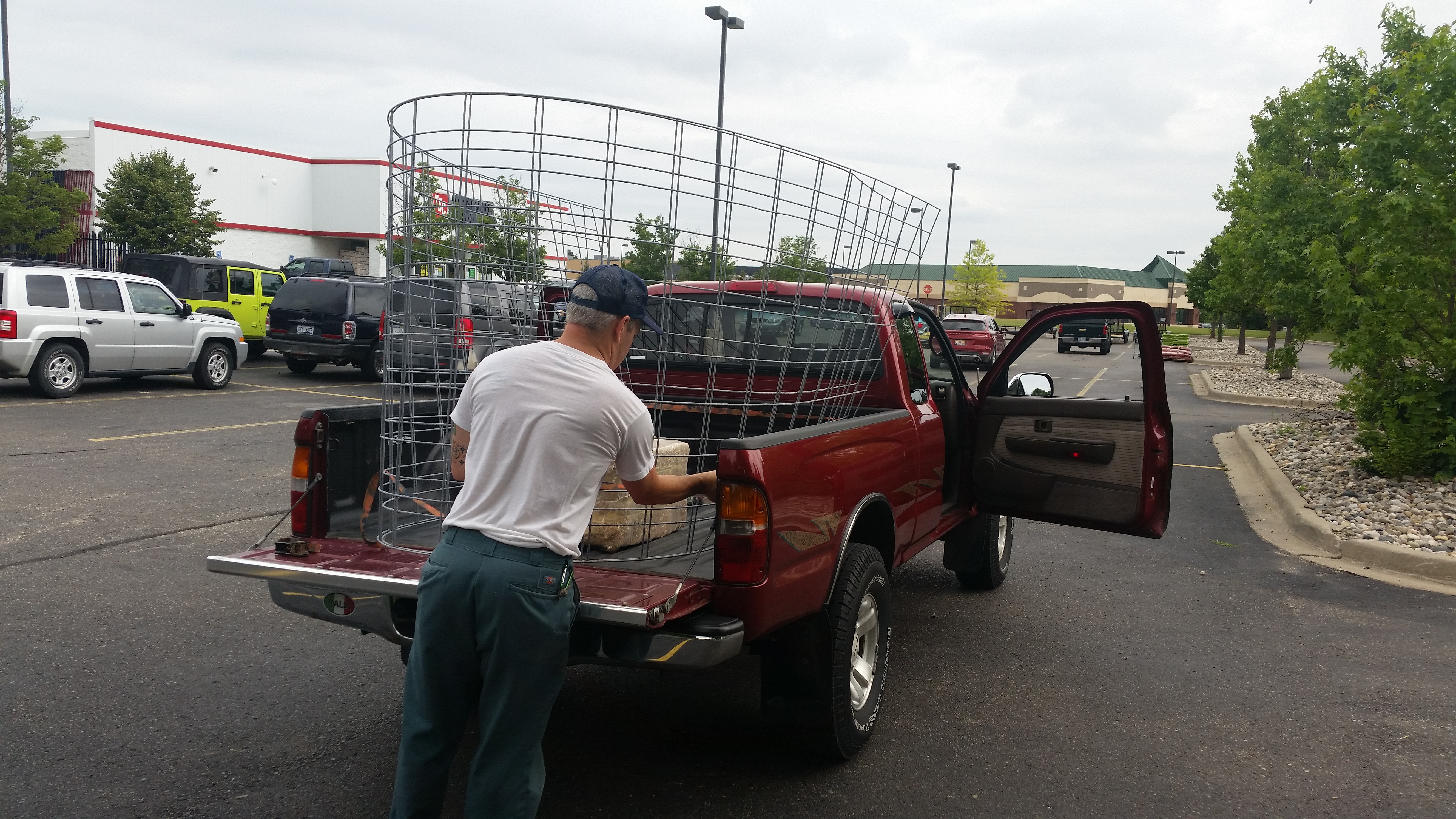 Just beyond the rock bed are the two raised beds, which are mostly full of tomatoes this year. I’m really pleased because we started all of them from seed this year, and they’re already flowering and starting to produce fruit. I haven’t gotten them tied up yet, though, because I’ve been wanting to try something different from my standard tomato-cage approach. I had the idea of using 16′ cattle panels to create an arch between the two raised beds. Then we could tie the tomatoes up to them (as well as grow beans, zukes, and other climbers) and hopefully eventually end up with a “plant tunnel” to walk through and harvest food. It’s super neat in my mind–let’s see if it turns out that way in reality. After a little creative truck usage, we got two of the cattle panels home today, so hopefully more on that project soon!
