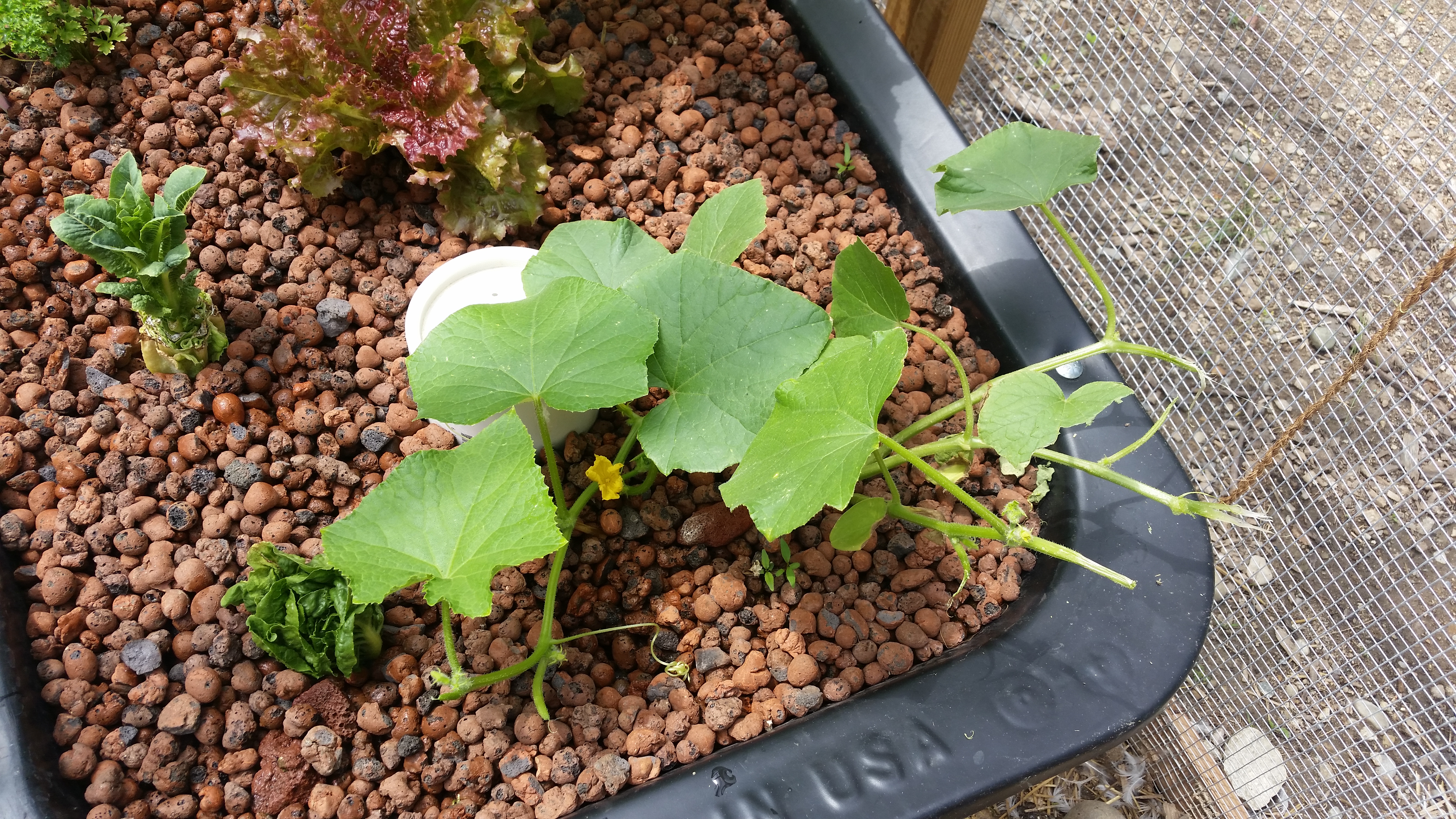 Speaking of the big kids, they are on the naughty list because they “harvested” an entire romaine lettuce plant from the quackuaponics system. I thought Brandon may have pulled it out, until I looked more closely at the (chewed-upon) remains of the zucchini plant nearby…