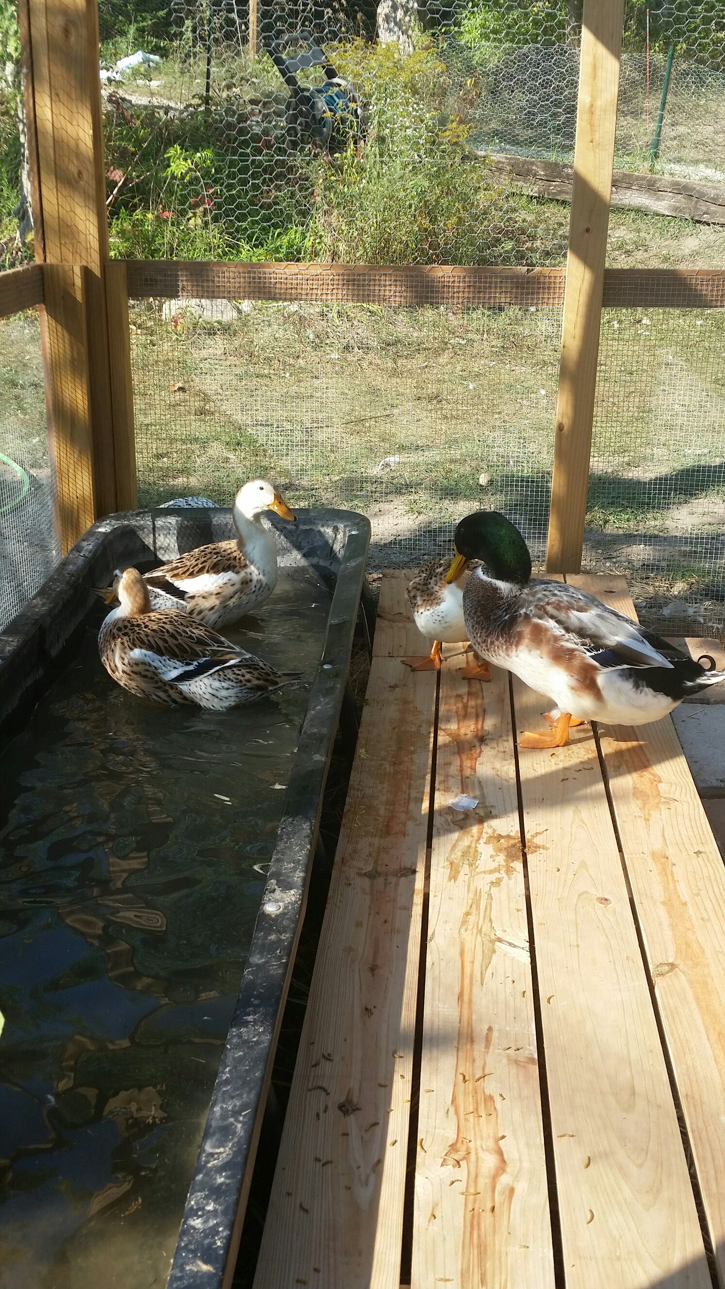It’s been running this way for two weeks now, and hasn’t needed any maintenance beyond a new plug when a previously caulked hole in the bottom gave out. The ducks often spend a bunch of time in here in the morning before we let them out into the paddock. The water will get pretty grody, but after a few hours of fresh water flowing in it’s back to looking lovely and clear. It basically completely cleans itself out overnight.