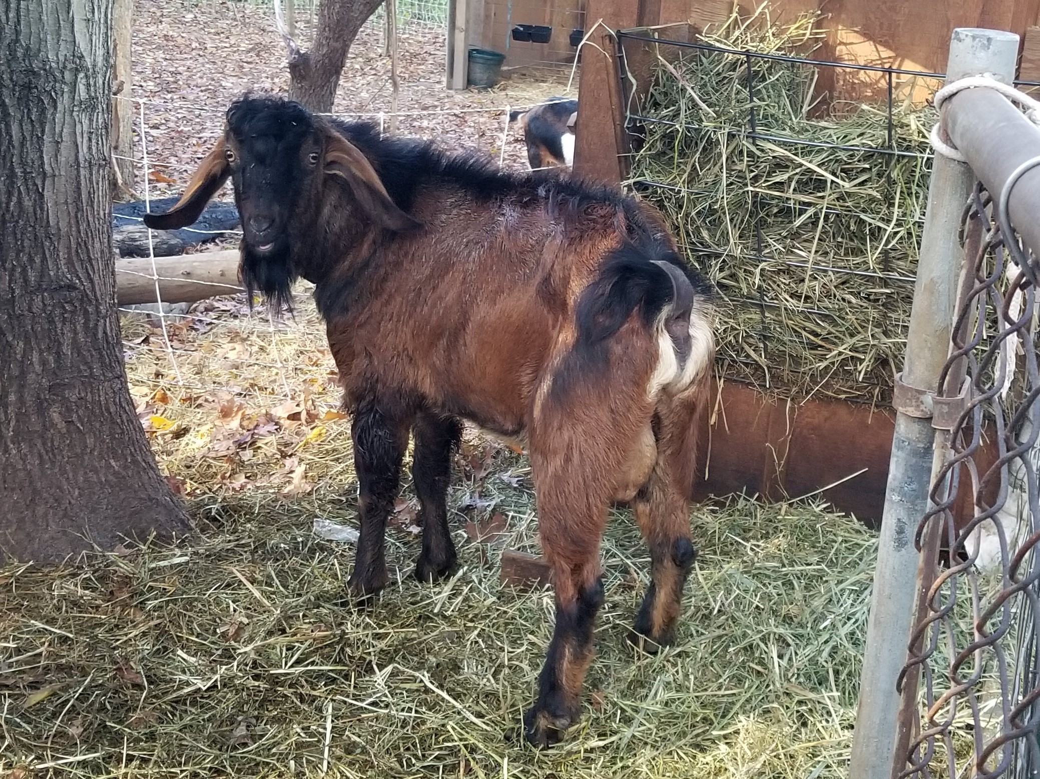 We are part of a “goat cooperative” with our neighbors and friends at Polliwog Farm. We keep several does on our property, and borrow their bucks for breeding season.